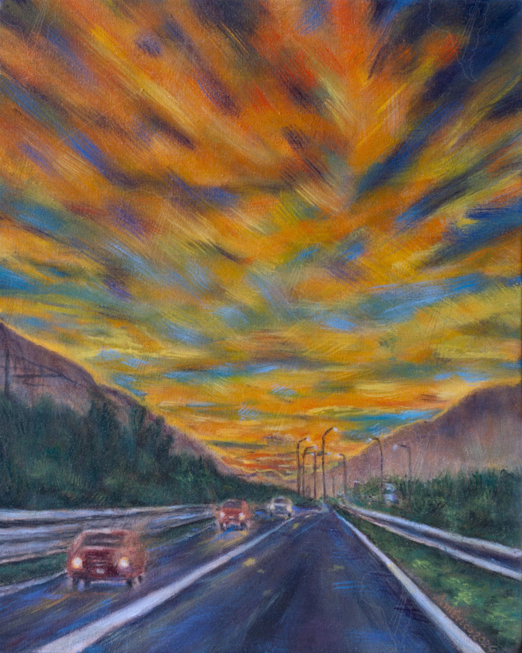 Un attimo fugace carico di tensione—un’immagine di partenza improvvisa, dove qualcosa di non nominato è cambiato, costringendo al movimento. Ciò che conta davvero resta invisibile, eppure preme da dietro, spingendo i veicoli in avanti. Pur ancorata al presente, l’emozione supera il tempo: l’istinto universale di andare, di cercare sicurezza, quando ciò che si lascia alle spalle non può più essere affrontato.
